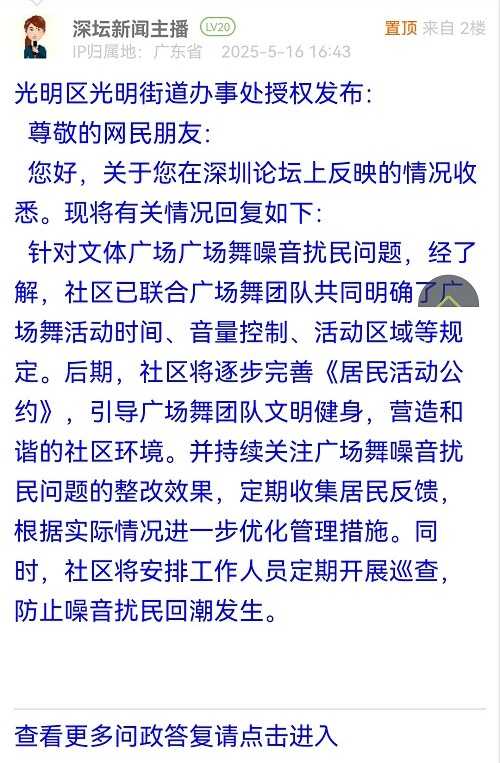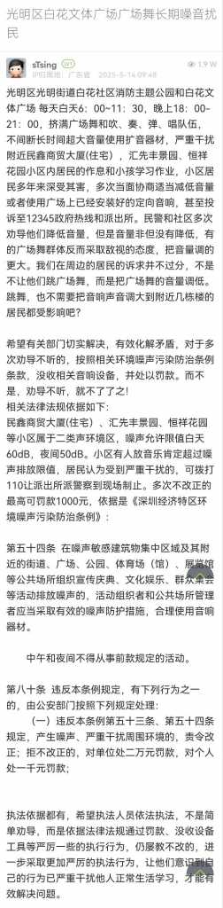 9. 帖文《光明區(qū)白花文體廣場廣場舞長期噪音擾民》