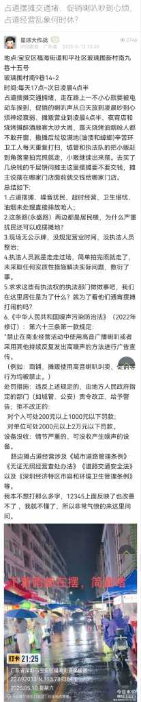 24. 帖文《占道擺攤交通堵、促銷喇叭吵到心煩,占道經(jīng)營亂象何時休?》
