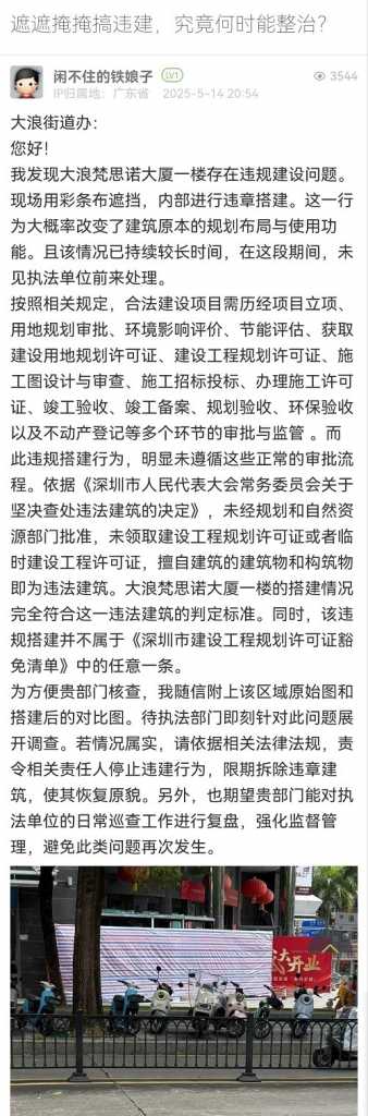 12. 帖文《遮遮掩掩搞違建,究竟何時能整治?》