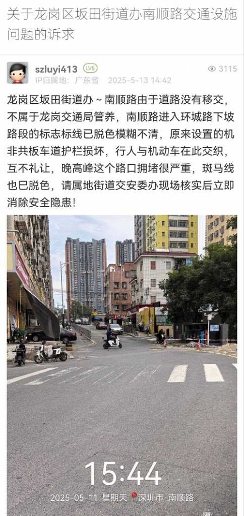 20. 帖文《關(guān)于龍崗區(qū)坂田街道辦南順路交通設施問題的訴求》