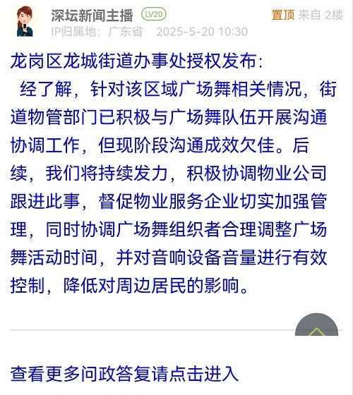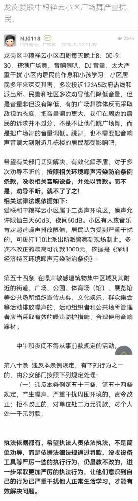 2. 帖文《龍崗愛聯(lián)中糧祥云小區(qū)廣場舞嚴重擾民。》