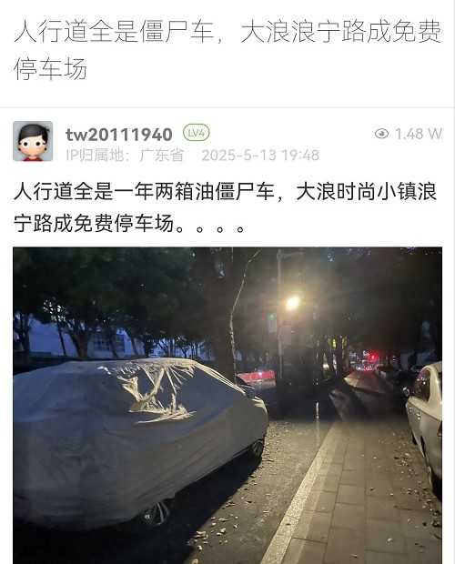 7. 帖文《人行道全是僵尸車,大浪浪寧路成免費停車場》