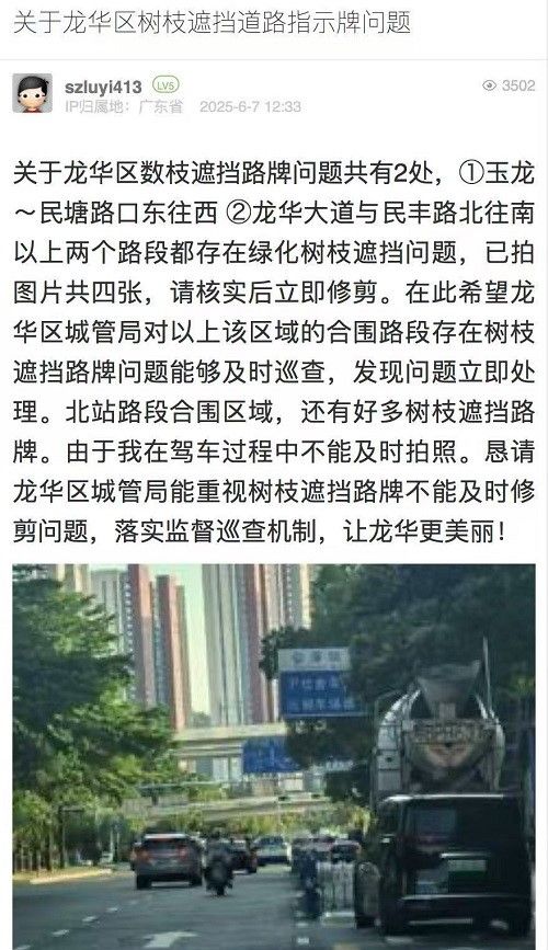 13. 帖文《關(guān)于龍華區(qū)樹(shù)枝遮擋道路指示牌問(wèn)題》