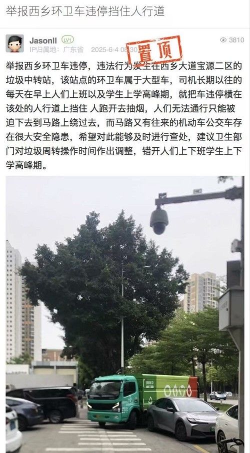 6. 帖文《舉報(bào)西鄉(xiāng)環(huán)衛(wèi)車(chē)違停擋住人行道》