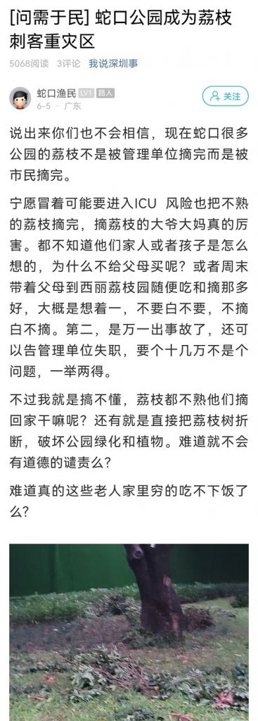 17. 帖文《蛇口公園成為荔枝刺客重災(zāi)區(qū)》
