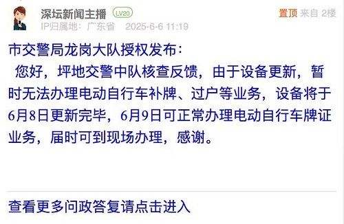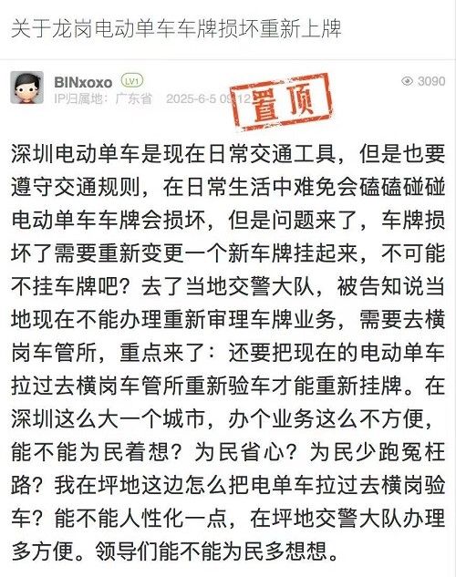 11. 帖文《關(guān)于龍崗電動(dòng)單車(chē)車(chē)牌損壞重新上牌》