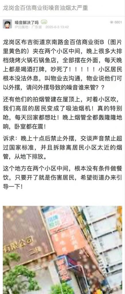 3. 帖文《龍崗金百信商業(yè)街噪音油煙太嚴(yán)重》