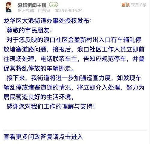 據(jù)統(tǒng)計(jì),2025年6月2日-2025年6月8日,網(wǎng)友在深圳論壇發(fā)布問(wèn)政類(lèi)帖文共24篇,得到相關(guān)單位正式回應(yīng)的帖文數(shù)為21篇,本期簡(jiǎn)報(bào)回應(yīng)速度最快的單位:羅湖區(qū)翠竹街道辦事處、羅湖區(qū)東門(mén)街道辦事處、市交警局龍崗大隊(duì)。