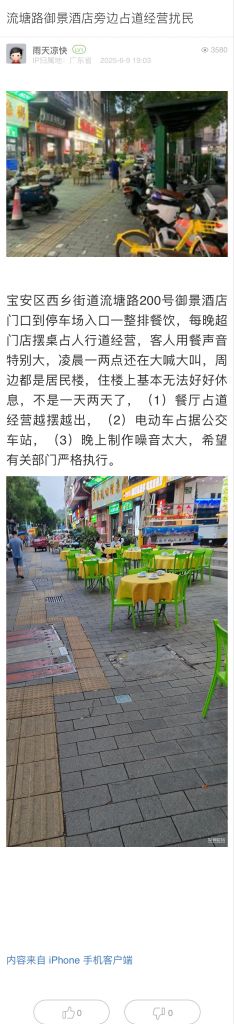 4. 帖文《流塘路御景酒店旁邊占道經(jīng)營擾民》