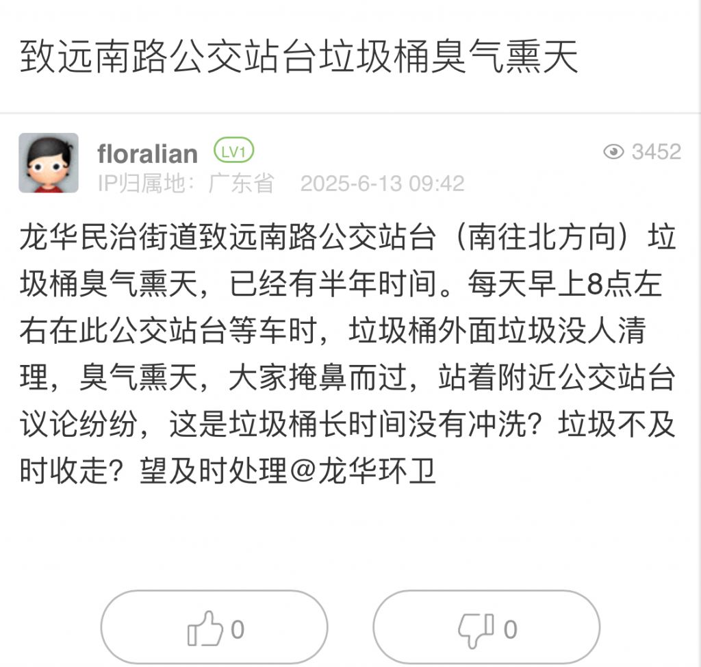 15. 帖文《致遠南路公交站臺垃圾桶臭氣熏天》