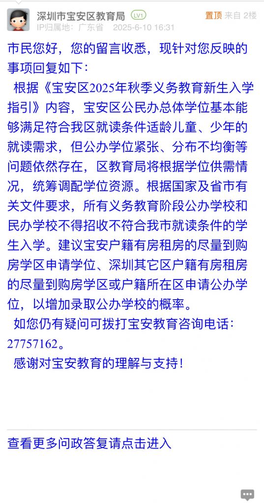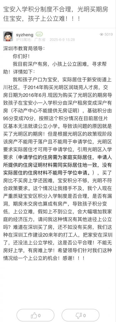 2. 帖文《寶安入學積分制度不合理,光明買期房住寶安,孩子上公立難?。。?/a>》