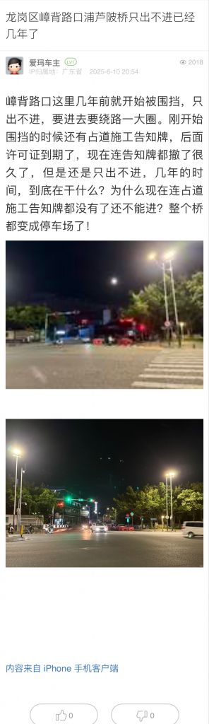 8. 帖文《龍崗區(qū)嶂背路口浦蘆陂橋只出不進已經(jīng)幾年了》