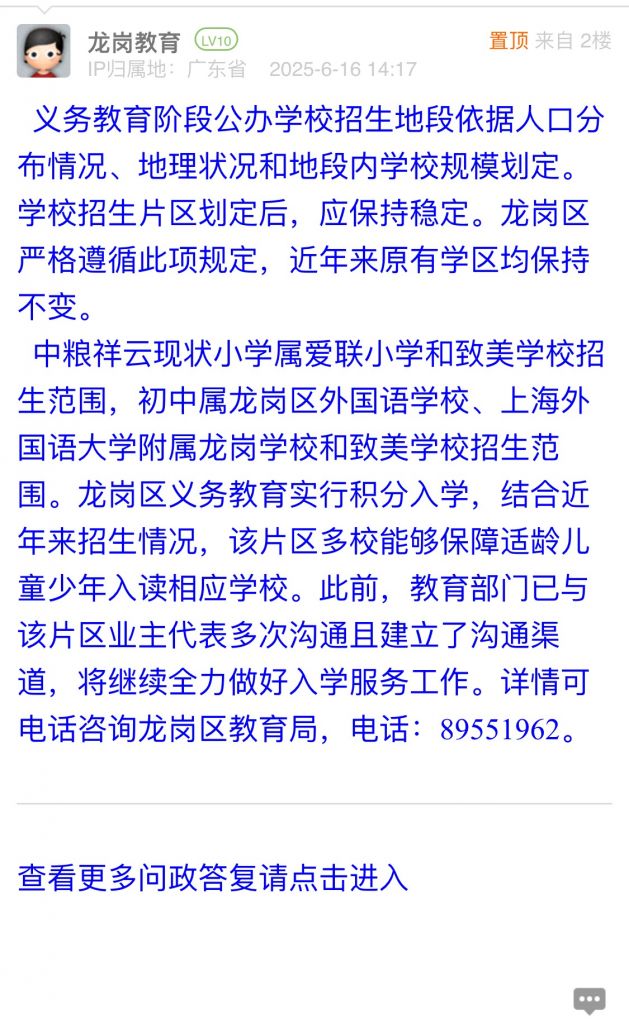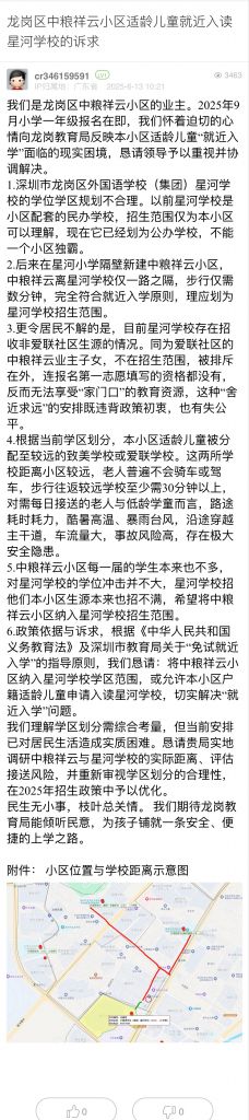 16. 帖文《龍崗區(qū)中糧祥云小區(qū)適齡兒童就近入讀星河學校的訴求》