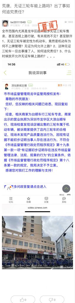 18. 帖文《荒唐,無證三輪車能上路嗎?出了事如何追究責任?》