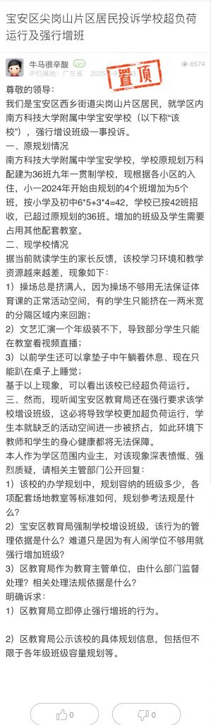 3. 帖文《寶安區(qū)尖崗山片區(qū)居民投訴學校超負荷運行及強行增班》《寶安區(qū)尖崗山片區(qū)居民投訴學校超負荷運行》《寶安區(qū)尖崗山片區(qū)居民投訴學校超負荷運行》