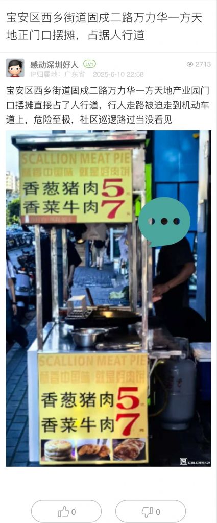 9. 帖文《寶安區(qū)西鄉(xiāng)街道固戍二路萬力華一方天地正門口擺攤,占據(jù)人行道》