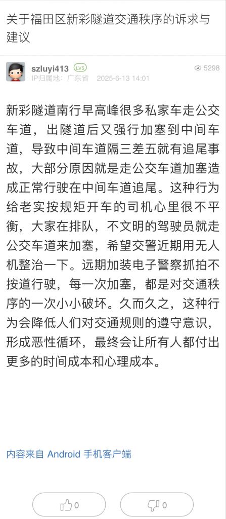 17. 帖文《關(guān)于福田區(qū)新彩隧道交通秩序的訴求與建議》