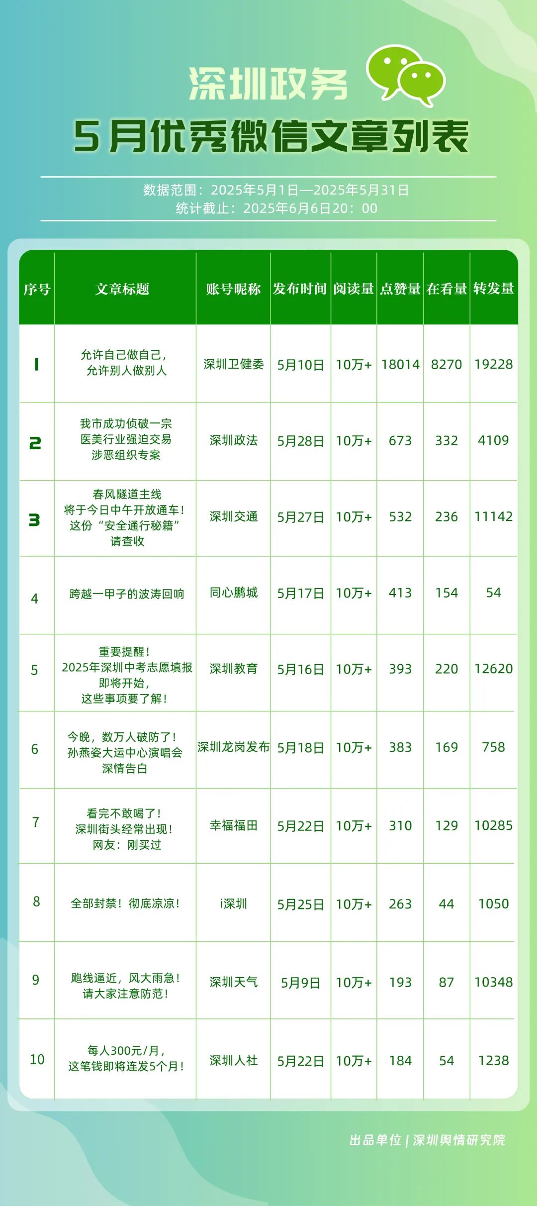 2025年5月期《深圳優(yōu)秀政務(wù)新媒體矩陣》發(fā)布,讓我們共同關(guān)注哪些矩陣以精準傳播、智慧服務(wù)與創(chuàng)新實踐,在政務(wù)新媒體領(lǐng)域打造出具有示范價值的標(biāo)桿案例,以矩陣合力構(gòu)建政務(wù)傳播新生態(tài),為深圳城市網(wǎng)絡(luò)形象塑造持續(xù)注入新動能。