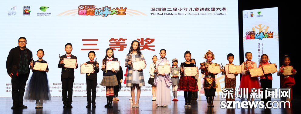 深圳新聞網總經理龍建濤為“故事大王”獲獎者頒獎