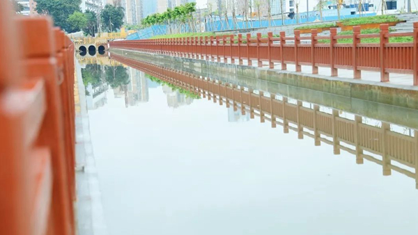 走在石圍涌岸邊,看到兩岸新修的朱紅色仿木欄桿與藍(lán)天、清水、綠草呼應(yīng),繪就了一幅自然、和諧、美麗的生態(tài)畫卷。