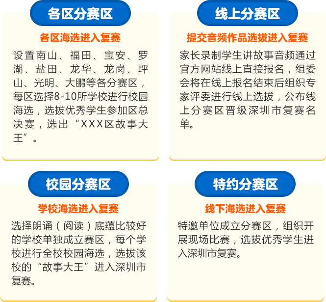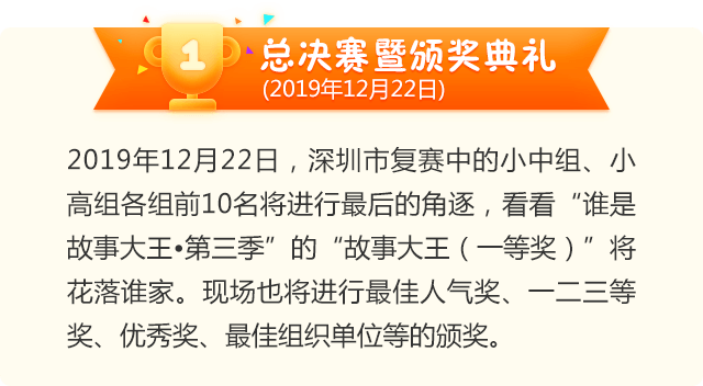讓閱讀成為動(dòng)人的風(fēng)景,讓故事的魅力感動(dòng)深圳。為助力建設(shè)良好的青少年閱讀環(huán)境,激發(fā)學(xué)生閱讀興趣,倡導(dǎo)親子閱讀,共建和諧家庭關(guān)系。2020年,第二十一屆深圳讀書月主題活動(dòng)“誰(shuí)是故事大王·第四季”在共青團(tuán)深圳市委員會(huì)、深圳市關(guān)愛行動(dòng)組委會(huì)辦公室的指導(dǎo)下再出發(fā)。更長(zhǎng)的活動(dòng)周期,更豐富的參與形式,更專業(yè)的賽制,“誰(shuí)是故事大王·第四季”等你來解鎖與挑戰(zhàn)!