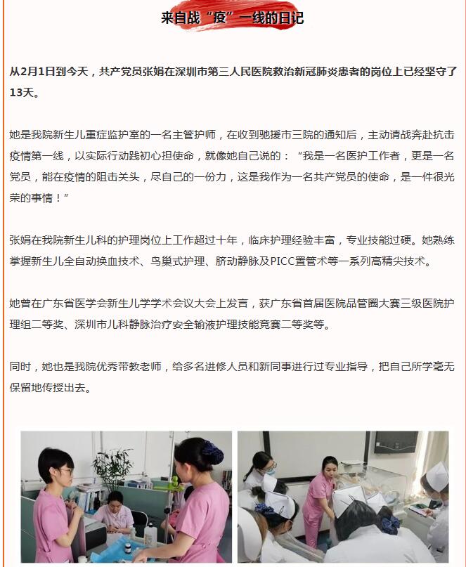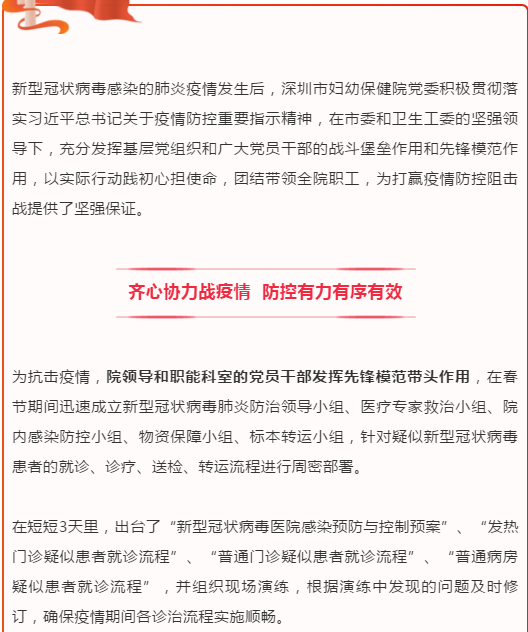 “婦女、兒童抵抗力比較弱,所以母嬰疫情防控工作更加顯得尤為重要。我們是全市婦幼的’龍頭’單位,不僅要做好全院的疫情防控工作,還承擔(dān)著向全市提供為母嬰健康保駕護(hù)航的指引工作,作為醫(yī)務(wù)人員我們更是責(zé)無(wú)旁貸要做好本職工作。“賴碧娟告訴記者,深圳市婦幼保健院是全市49家發(fā)熱門(mén)診之一,作為全市唯一一家婦幼三甲專科醫(yī)院,該院承擔(dān)著更多在特殊時(shí)期為母嬰健康與安全保駕護(hù)航的作用。